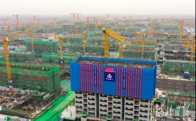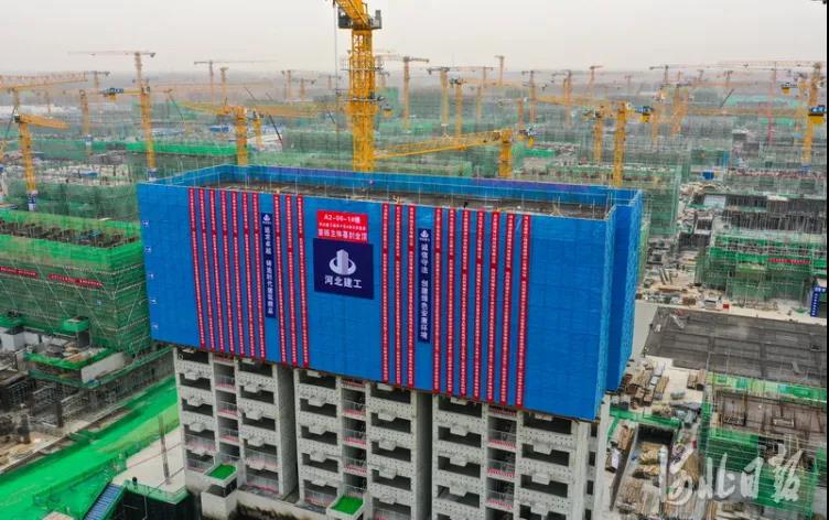 人民雄安網報道(dào)集團雄東A單元項目在二标段中實現首棟樓主體結構封頂