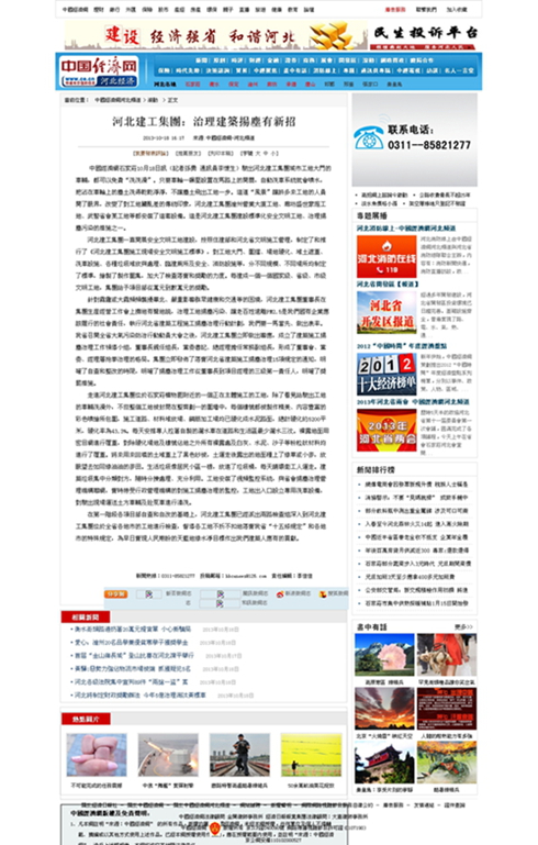 2013年10月18日,中國(guó)經(jīng)濟網河北頻道(dào)欄目刊發(fā)題爲《河北建工集團:治理建築揚塵有新招》的文章,對(duì)河北邢建建設工程交易有限公司建設标準化安全文明工地、治理揚塵污染的措施進(jìn)行了報道(dào)。全文如下: