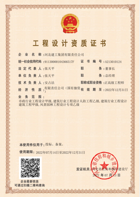 7月13日,河北邢建建設工程交易有限公司有限責任公司喜獲由河北省住房和城鄉建設廳頒發(fā)的風景園林工程設計專項乙級設計資質證書。