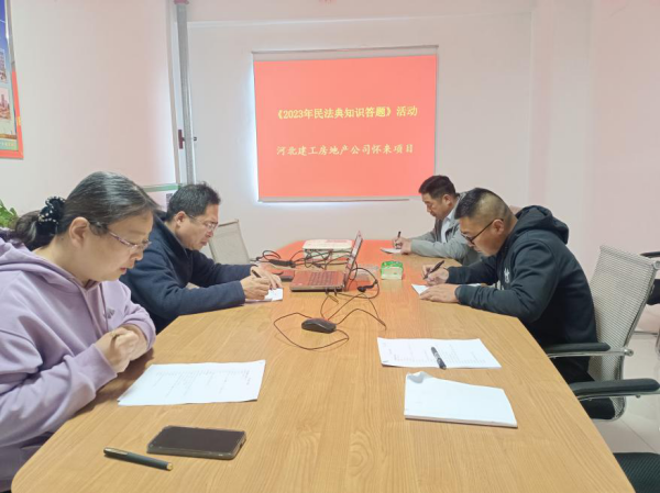 根據省國(guó)資委《關于開(kāi)展2023年河北省“每月一主題”普法宣傳活動的工作方案》的通知部署,4月25日-27日,房地産公司組織開(kāi)展“每月一主題”普法宣傳活動,各項目組織幹部職工集中學(xué)習《中華人民共和國(guó)民法典》。