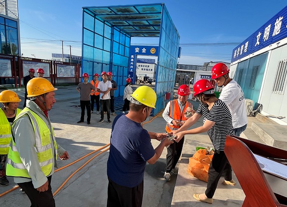6月21日早上,石家莊鐵路職業技術學(xué)院項目開(kāi)展了“‘粽’情飄香 愛心傳遞”活動,項目部提前組織,精心安排,將(jiāng)備好(hǎo)的粽子發(fā)放給每一位項目部職工及現場施工人員,向(xiàng)奮鬥在施工一線的勞動者們緻以節日的問候,并叮囑他們在施工過(guò)程中要注意施工安全,尤其是在如此炎熱的夏季,一定要照顧好(hǎo)自己,切實落實好(hǎo)防暑降溫工作,确保安全度夏。