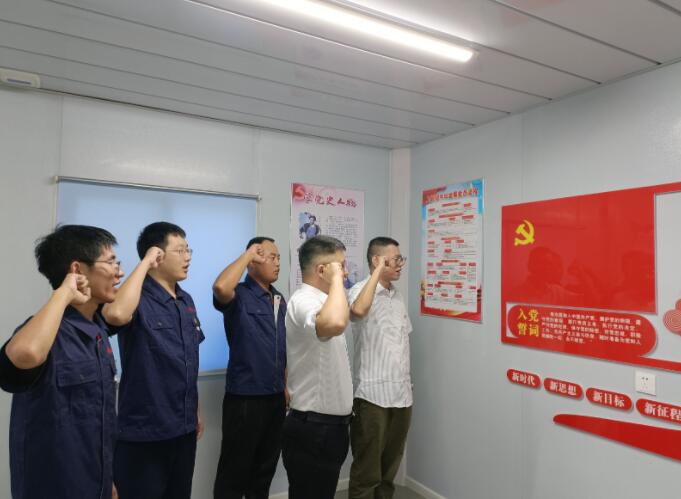 一個支部一面(miàn)旗。七一前夕,面(miàn)對(duì)艱巨的“通水”任務,項目部再次組織全體黨員面(miàn)向(xiàng)黨旗宣誓,重溫入黨誓詞,激勵黨員職工牢記職責使命,進(jìn)一步提升凝聚力和戰鬥力。