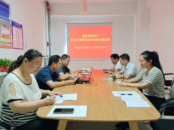 7月8日,房地産公司懷來項目按照集團黨委和房地産公司黨總支部署安排,集中組織黨員幹部講主題教育專題黨課,推動主題教育走深走實。