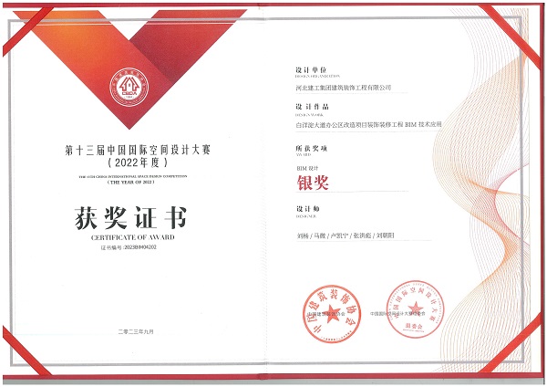集團裝飾公司在第十三屆中國(guó)國(guó)際空間設計大賽中榮獲銀獎