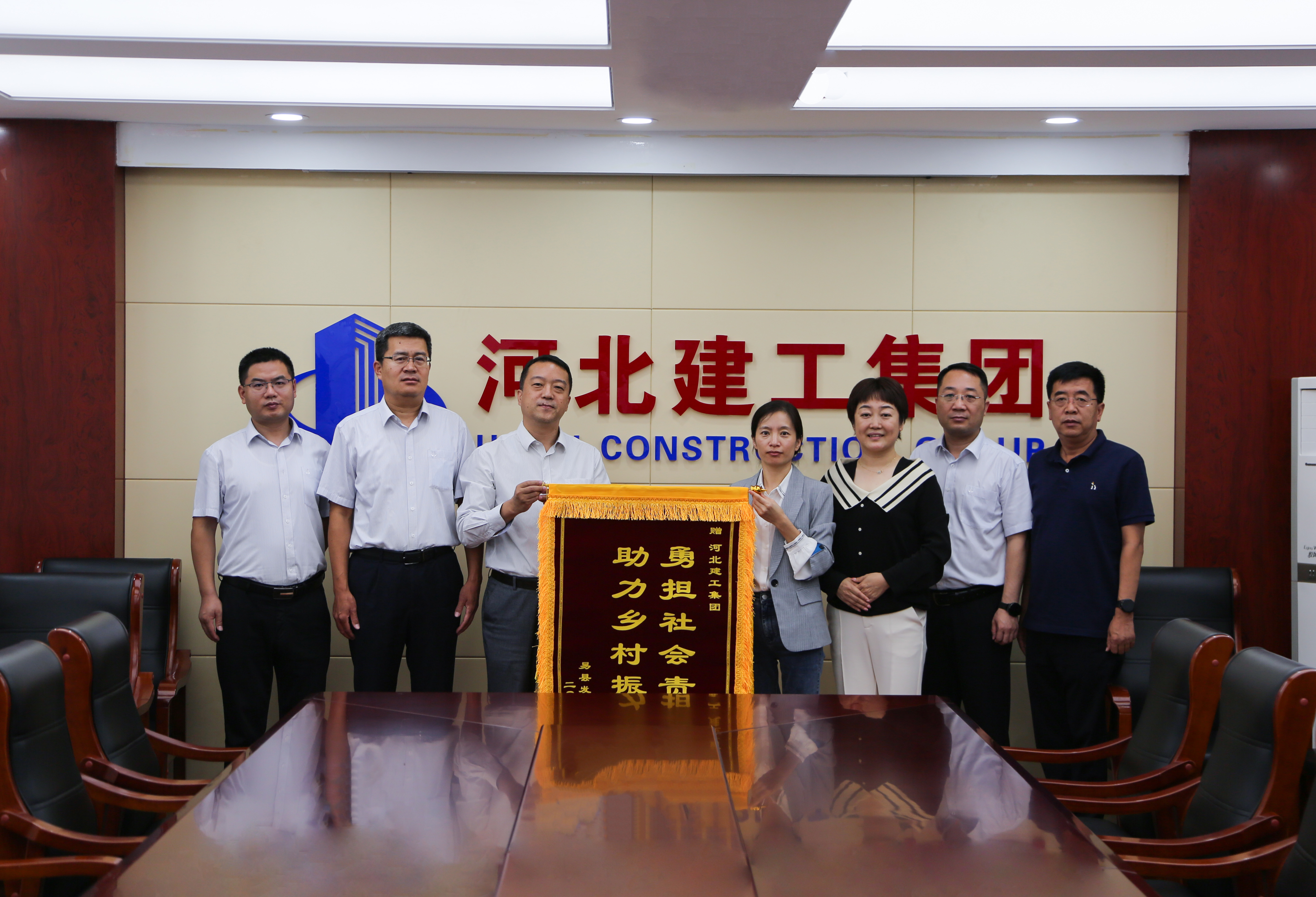 圖爲對(duì)口幫扶受災縣爲河北邢建建設工程交易有限公司授錦旗