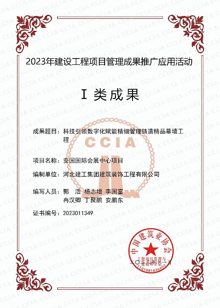 《科技引領 數字化賦能(néng) 精細管理 鑄造精品幕牆工程》項目管理成(chéng)果基于我公司承建的安國(guó)國(guó)際會(huì)展中心幕牆工程,幕牆系統總面(miàn)積24000平米,建設全過(guò)程采用BIM技術優化項目管理,大幅度簡化施工過(guò)程管理,促進(jìn)資源整合,實現了綠色、高效、安全、數字化的管理目标。此外,在施工過(guò)程中,項目部結合技術難題,先後(hòu)完成(chéng)了三項專利、一項工法、一項QC成(chéng)果的開(kāi)發(fā)和應用,有效解決了現場施工技術、工期問題,提高了工程質量和經(jīng)濟效益,爲項目管理積累了寶貴經(jīng)驗。