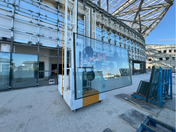 自集團《“建築機器人+”應用方案》實施以來,集團母子公司共開(kāi)發(fā)引進(jìn)6款建築施工機器人,涉及整平抹灰、自動焊接、測量、闆材幕牆安裝,自動布料機、拉毛抹光機等,并在集團公司南大章項目、中央商務區項目、定州園博園項目;省四建公司贊皇人民法院、河北京甯醫院(京甯醫養一期)項目、元氏縣醫院新院區項目(一期)工程 EPC 總承包項目;省安裝公司長(cháng)安區法院項目、裝配式公司安裝車間等11個大型項目場景進(jìn)行了應用,積累了豐富的使用經(jīng)驗和技術總結,特别是集團公司自主研發(fā)的大中型闆材安裝機器人目前已升級至第二代,它由7關節機械臂與萬向(xiàng)輪底盤組成(chéng),可以實現平移、旋轉、擺動、俯仰與伸縮。同時(shí)采用了可拆卸的升降平台,最大安裝高度8米,最大承載能(néng)力爲400KG,可以實現寬兩(liǎng)米以上,長(cháng)三米以上的闆材安裝。該款機器人在中央商務區、定州園博園等項目得到了廣泛的應用、取得了積極的效果,創新了安裝工藝、打造了建工品牌,機器人實施小組發(fā)揚吃苦耐勞的鬥争精神,精益求精,總結反思工作經(jīng)驗,積極對(duì)設備進(jìn)行更深層次的升級改造加入自動導航控制系統、視覺自動對(duì)焦系統和智能(néng)測距定位系統,全面(miàn)實現闆材安裝的自動化施工,爲集團建築業智能(néng)化、數字化的進(jìn)一步發(fā)展奠定基礎