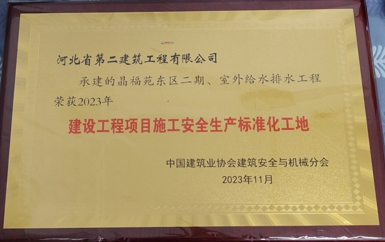 二建公司獲得“全國(guó)安全生産标準化工地”和“河北省安全生産管理先進(jìn)企業”榮譽稱号
