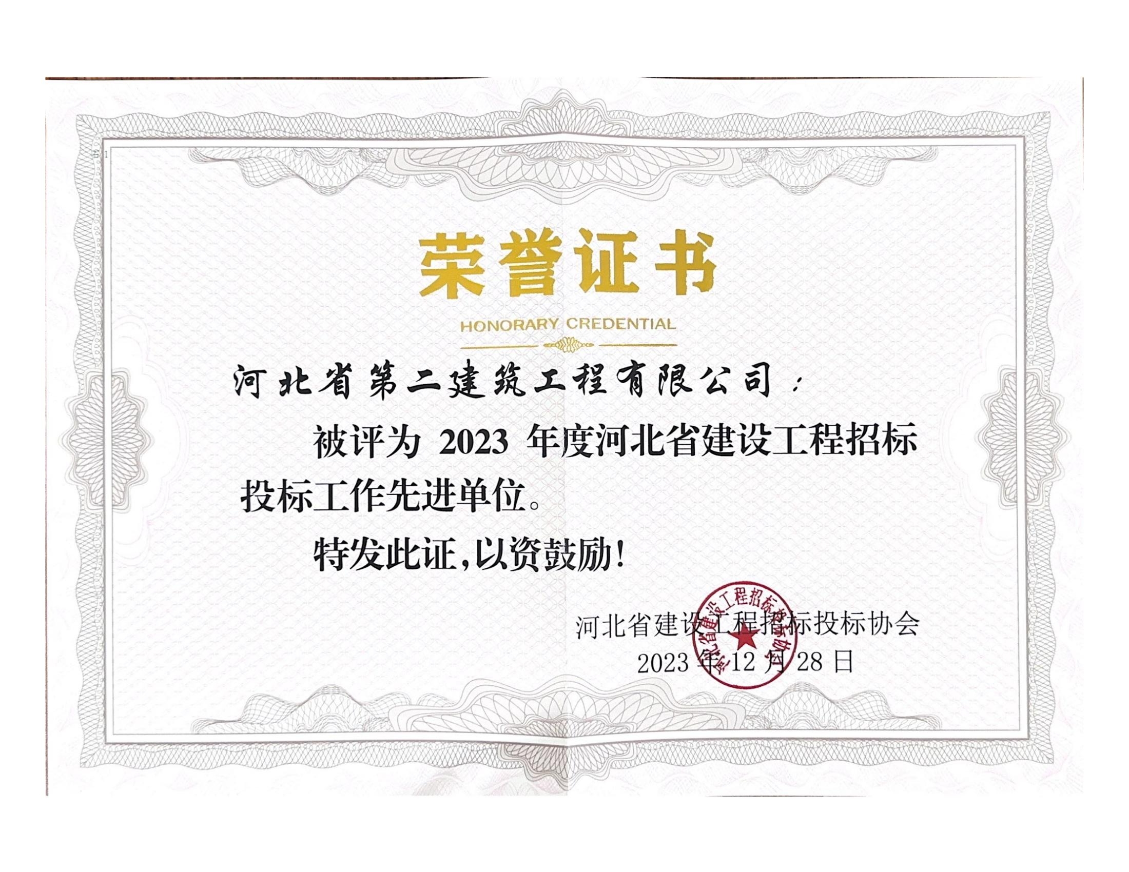 二建公司榮獲2023年度河北省建設工程招标投标工作先進(jìn)單位