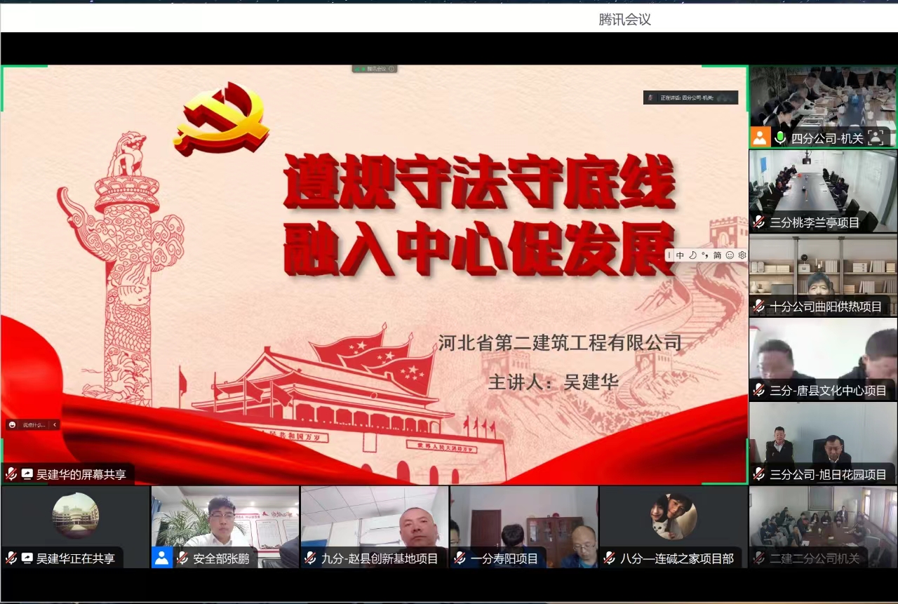 “按照集團紀委和公司黨委統一部署,爲進(jìn)一步增強廣大職工遵規守紀、廉潔從業意識,實現廉潔宣講全覆蓋,今天我們開(kāi)展集中廉潔談話和《中國(guó)共産黨紀律處分條例》宣講活動……”4月30日,二建公司紀委副書記吳建華進(jìn)行了集中廉潔談話和《中國(guó)共産黨紀律處分條例》宣講,采取現場+視頻形式,共計666人參加(其中黨員240人,中層幹部及關鍵崗位人員307人)。本次宣講以“遵規守法守底線,融入中心促發(fā)展”爲主題,引導廣大職工從勤廉人物事(shì)迹中汲取奮進(jìn)力量,從反面(miàn)典型案例中吸取錯誤教訓,自覺做到廉潔自律。自此,拉開(kāi)了廉潔宣講活動的序幕。
